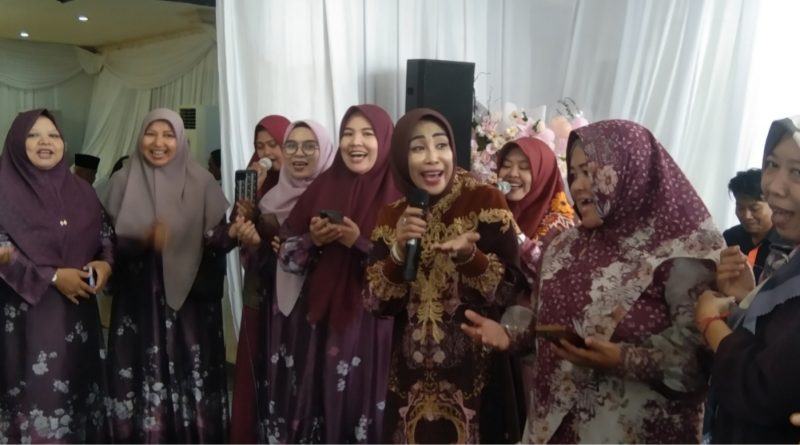 Suasana semakin mencair ketika Wabup dan suaminya ikut bernyanyi bersama tamu di bawah tenda yang telah disiapkan. Iringan musik elektone. (her)